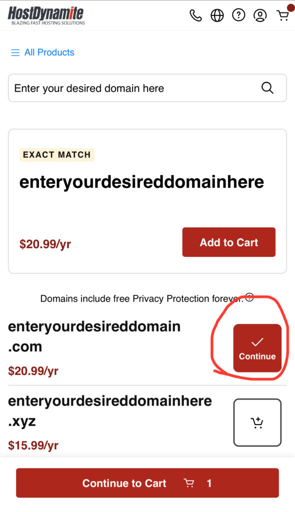 Click “Checkout”, pay, and the domain is instantly registered in your name.