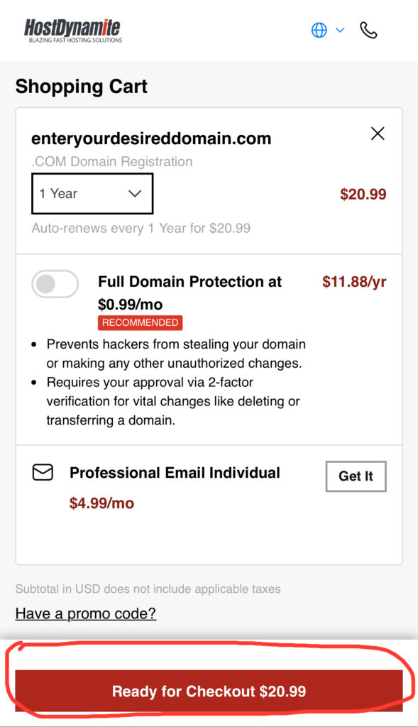 You can register your domain for 1 to 10 years. Many professionals choose 3–5 years to lock in their brand long-term and avoid renewal hassles.